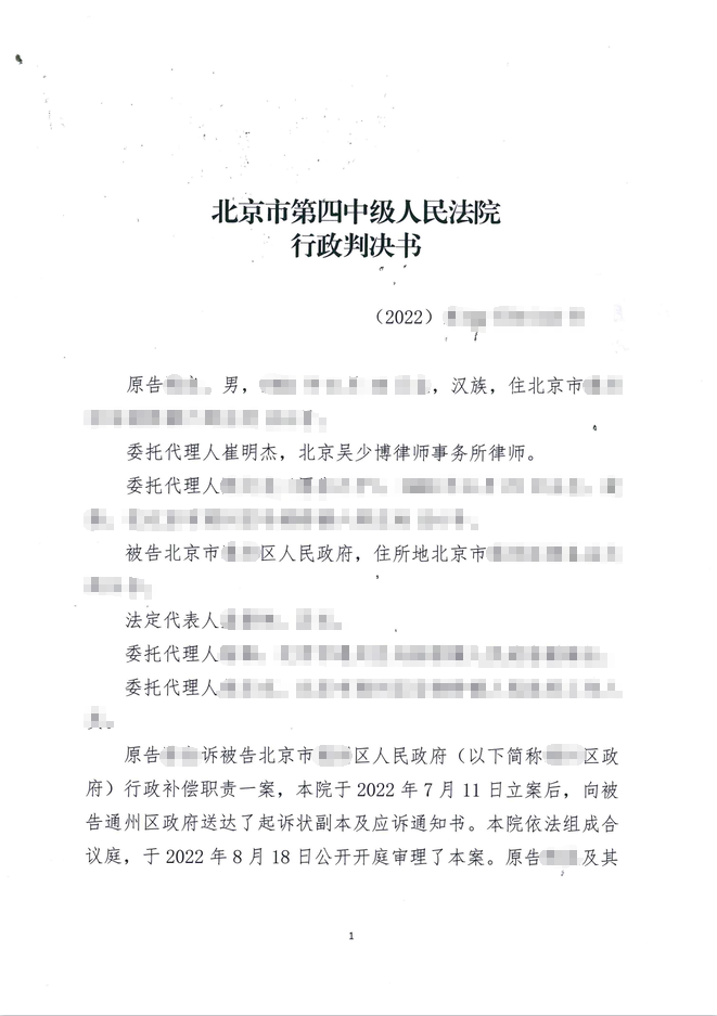 本案代理律師 北京吳少博律師事務所張弛 案情摘要: 宅基地強制騰退 當事人遭受言語威脅失